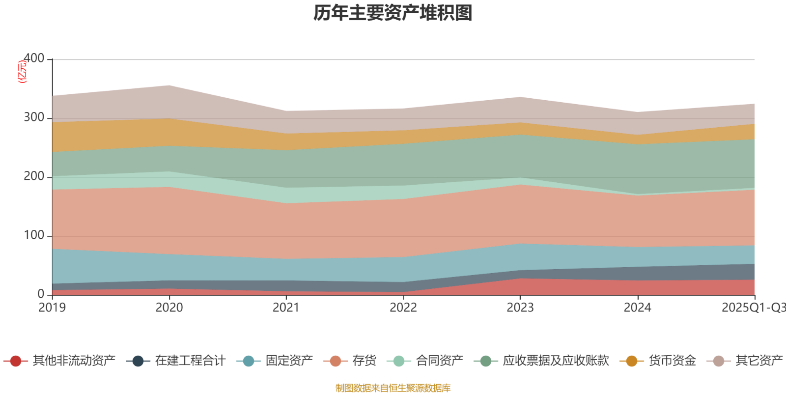 资产重大变化方面,截至2025年三季度末,公司货币资金较上年末增加62.87%,占公司总资产比重上升2.88个百分点;其他应收款(含利息和股利)较上年末减少82.72%,占公司总资产比重下降1.87个百分点;应收票据及应收账款较上年末减少2.2%,占公司总资产比重下降1.76个百分点;固定资产较上年末减少6.66%,占公司总资产比重下降1.16个百分点。