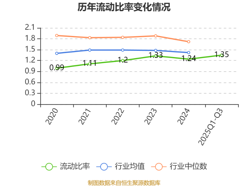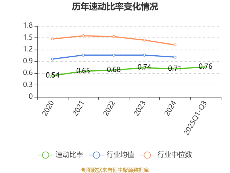 2025年前三季度,公司流动比率为1.35,速动比率为0.76。