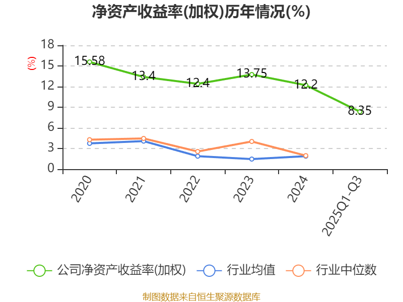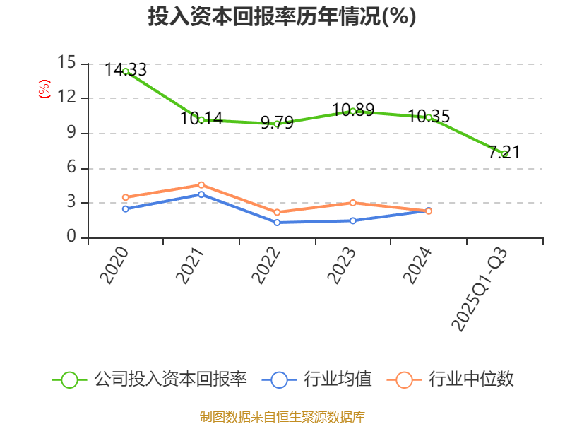 盈利能力方面, 2025年前三季度公司加权平均净资产收益率为8.35%,同比下降0.87个百分点。公司2025年前三季度投入资本回报率为7.21%,较上年同期下降0.55个百分点。