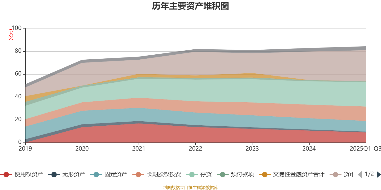 资产重大变化方面,截至2025年三季度末,公司使用权资产较上年末减少15.81%,占公司总资产比重下降2.18个百分点;货币资金较上年末增加8.96%,占公司总资产比重上升2.12个百分点;固定资产较上年末减少5.16%,占公司总资产比重下降0.82个百分点;存货较上年末增加4.44%,占公司总资产比重上升0.64个百分点。