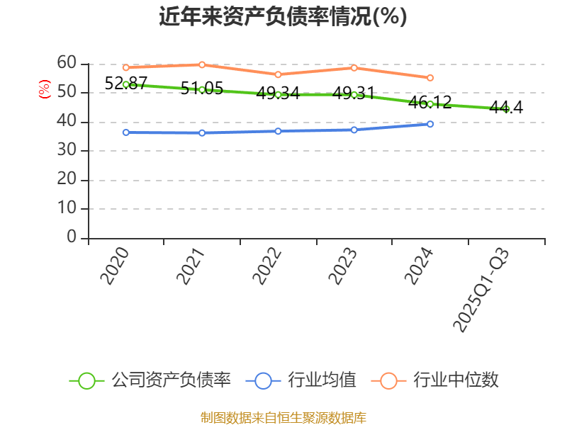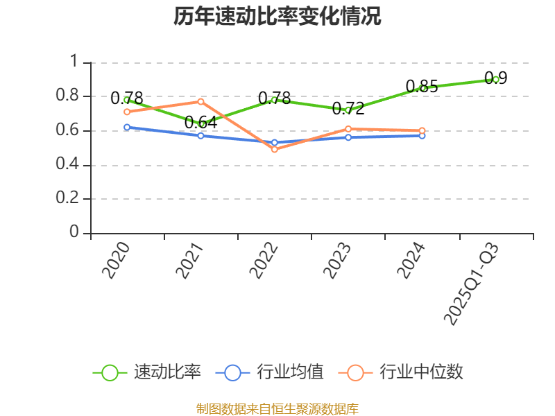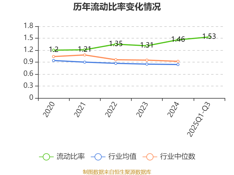 2025年前三季度,公司流动比率为1.53,速动比率为0.9。