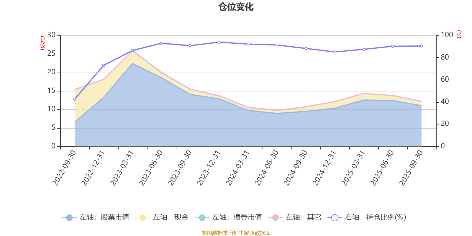 据定期报告数据统计,近三年平均股票仓位为88.5%,同类平均为85.99%。2023年末基金达到93.93%的最高仓位,2022年三季度末最低,为42.56%。