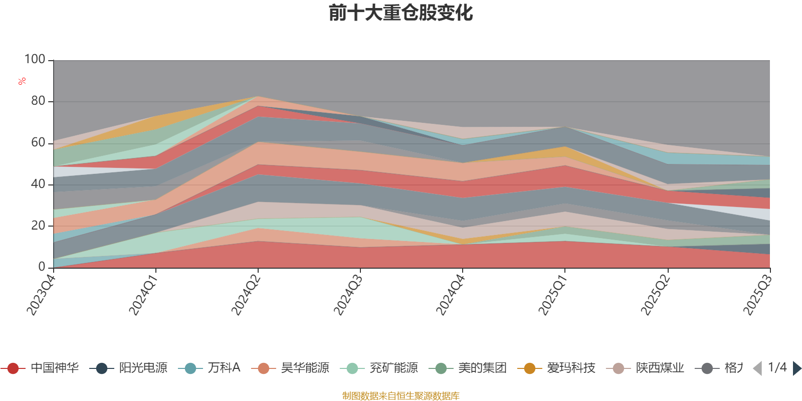 该基金持股集中度较高。截至2025年三季度末,基金十大重仓股分别是中煤能源、晋控煤业、中国神华、宁德时代、电投能源、阳光电源、天赐材料、美的集团、阿特斯、金风科技。