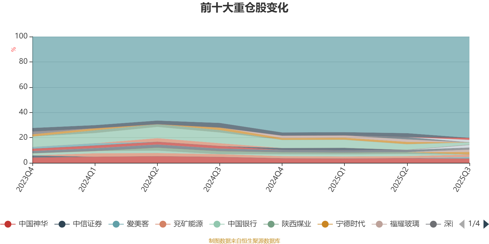 截至2025年三季度末,基金十大重仓股分别是中国神华、药明康德、三一重工、宁德时代、兖矿能源、长江电力、福耀玻璃、深南电路、长电科技、爱美客。