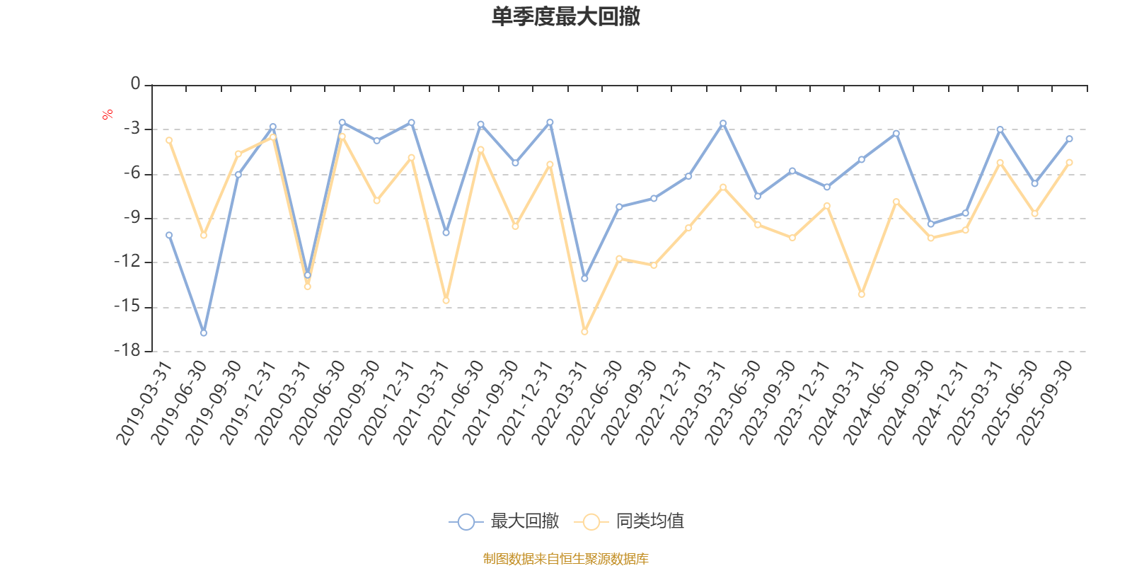 截至10月27日,基金近三年最大回撤为16.48%,同类可比基金排名222/1274。单季度最大回撤出现在2019年二季度,为16.76%。