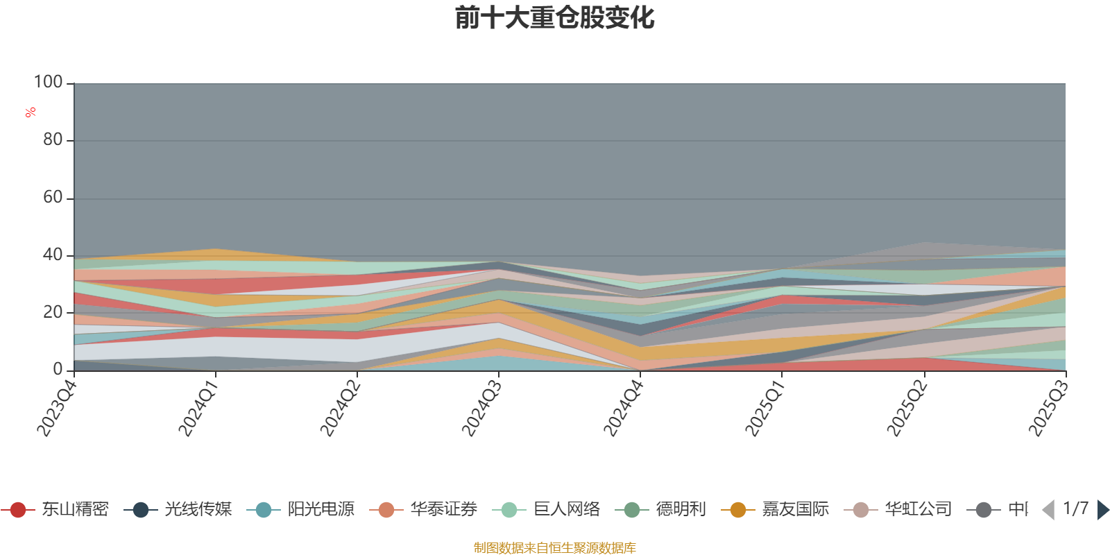 截至2025年三季度末,基金十大重仓股分别是工业富联、恒立液压、ST华通、华虹公司、宁德时代、阳光电源、德明利、巨人网络、中国银河、江波龙。