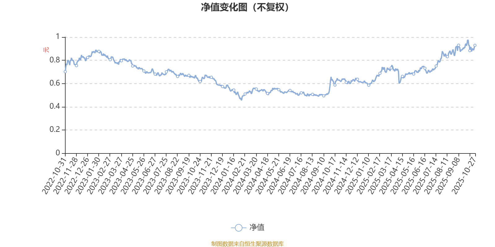 通过所选区间该基金净值增长率分位图,可以观察该基金与同类基金业绩比较情况。图为坐标原点到区间内某时点的净值增长率在同类基金中的分位数。