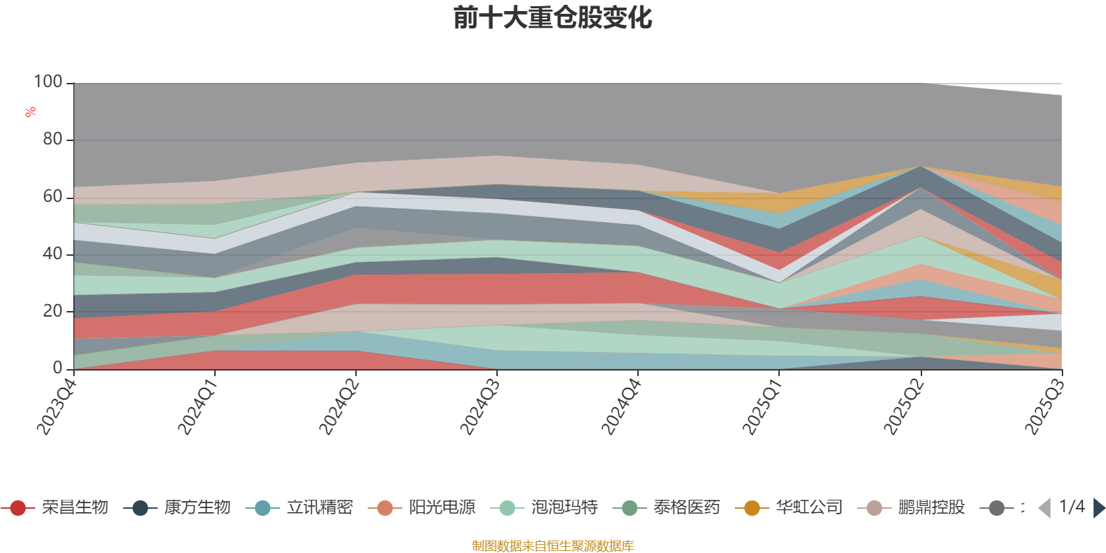 该基金持股集中度较高,近2年前十大重仓股集中度长期超过60%。截至2025年三季度末,基金重仓股分别是华虹半导体、药明生物、德业股份、中芯国际、北方华创、阿里巴巴-W、宁德时代、阳光电源、小鹏汽车-W、百济神州、华虹公司。