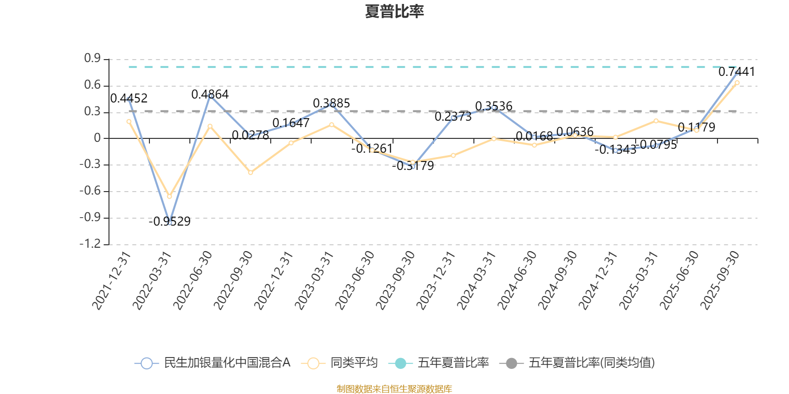 截至9月30日,基金近三年夏普比率为0.8371,位于同类可比基金219/1285。