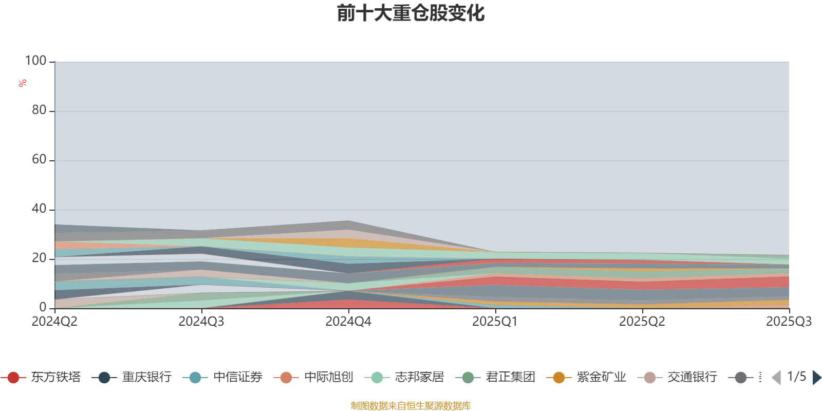 截至2025年三季度末,基金十大重仓股分别是宁德时代、贵州茅台、中国平安、招商银行、紫金矿业、新易盛、中际旭创、美的集团、东方财富、兴业银行。