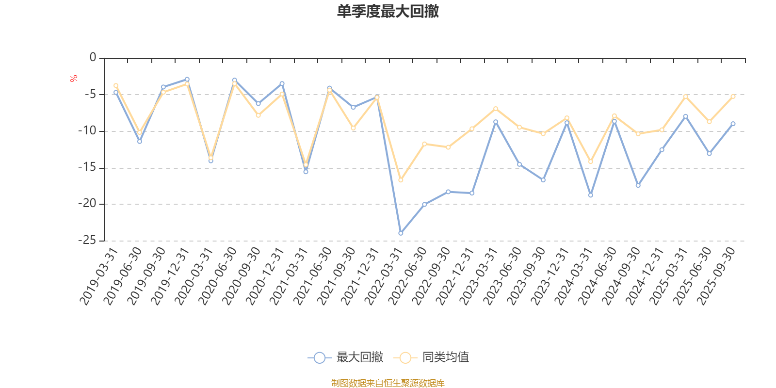 截至10月27日,基金近三年最大回撤为51.08%,同类可比基金排名1203/1274。单季度最大回撤出现在2022年一季度,为23.96%。