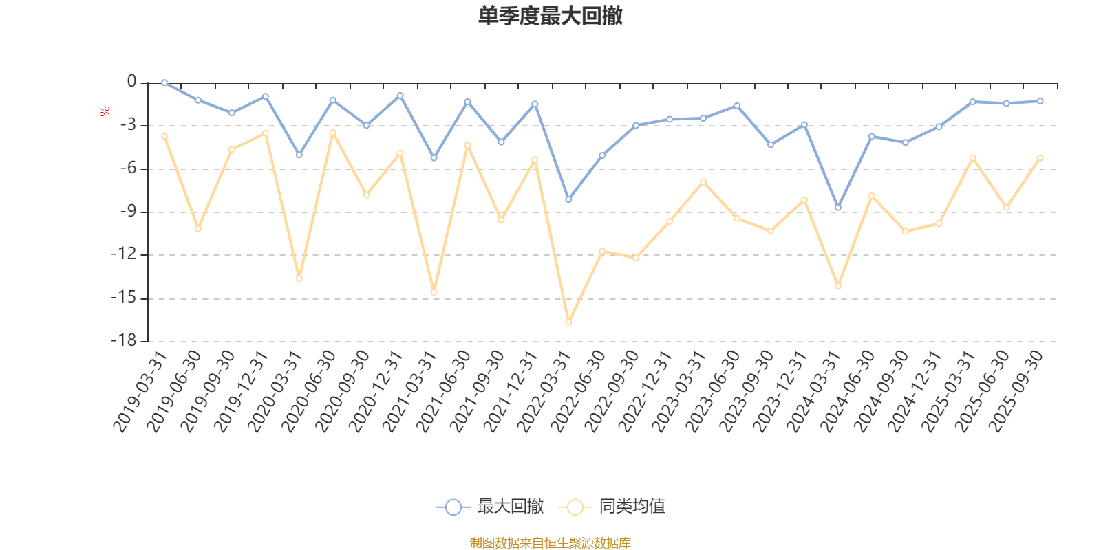 截至10月27日,基金近三年最大回撤为10.96%,同类可比基金排名157/1274。单季度最大回撤出现在2024年一季度,为8.69%。