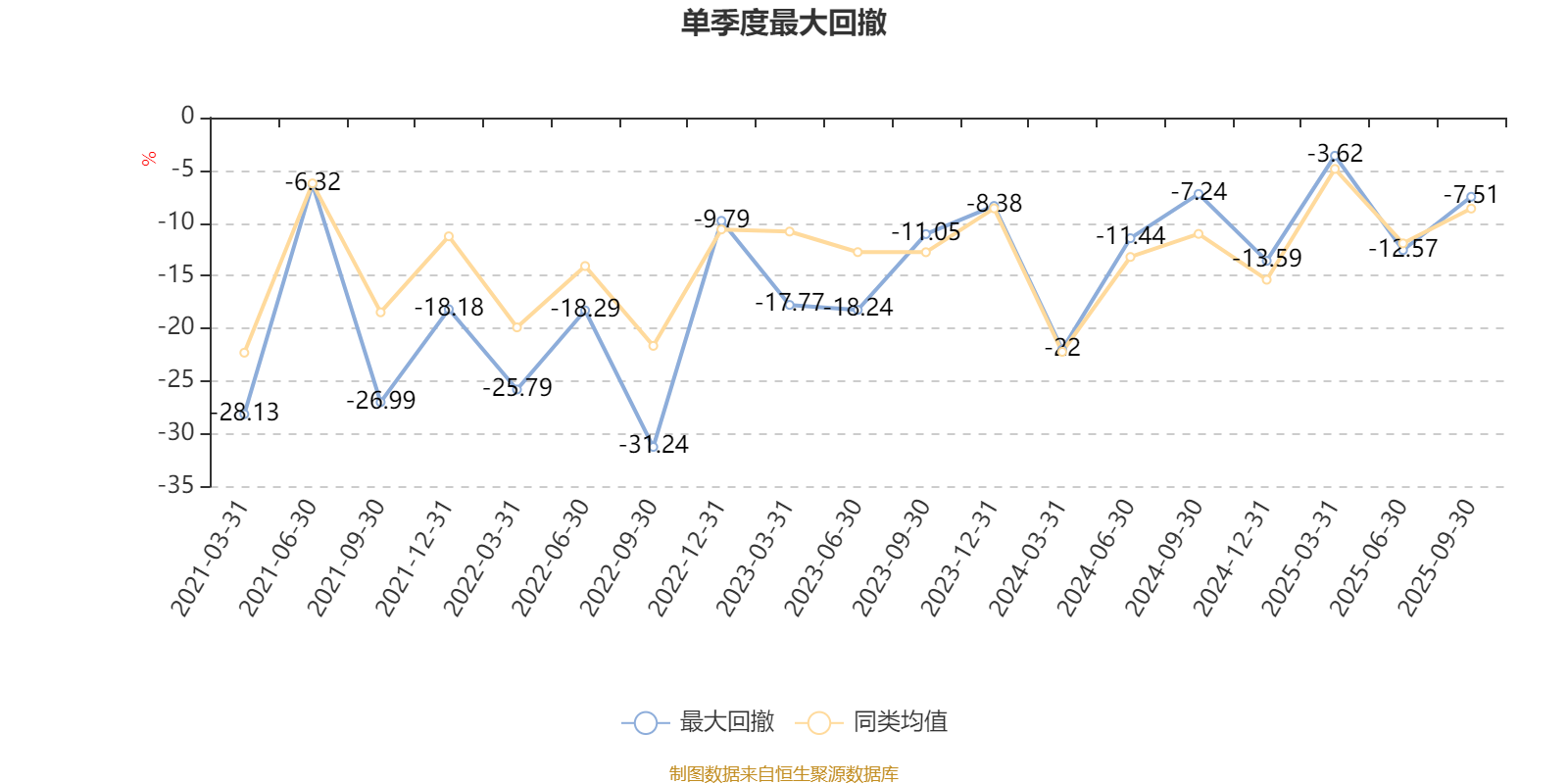 截至10月27日,基金近三年最大回撤为45.35%,同类可比基金排名60/75。单季度最大回撤出现在2022年三季度,为31.24%。