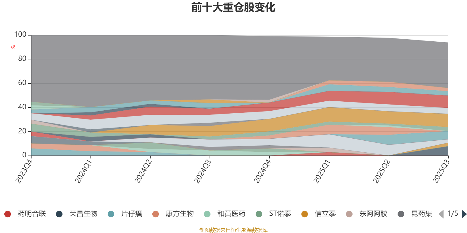截至2025年三季度末,基金十大重仓股分别是科伦博泰生物-B、信达生物、荣昌生物、三生制药、百利天恒、恒瑞医药、药明康德、泽璟制药、信立泰、新诺威。