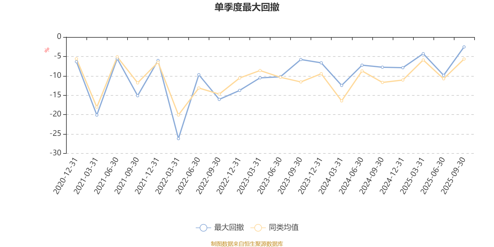 截至10月27日,基金近三年最大回撤为31.64%,同类可比基金排名163/513。单季度最大回撤出现在2022年一季度,为26.21%。