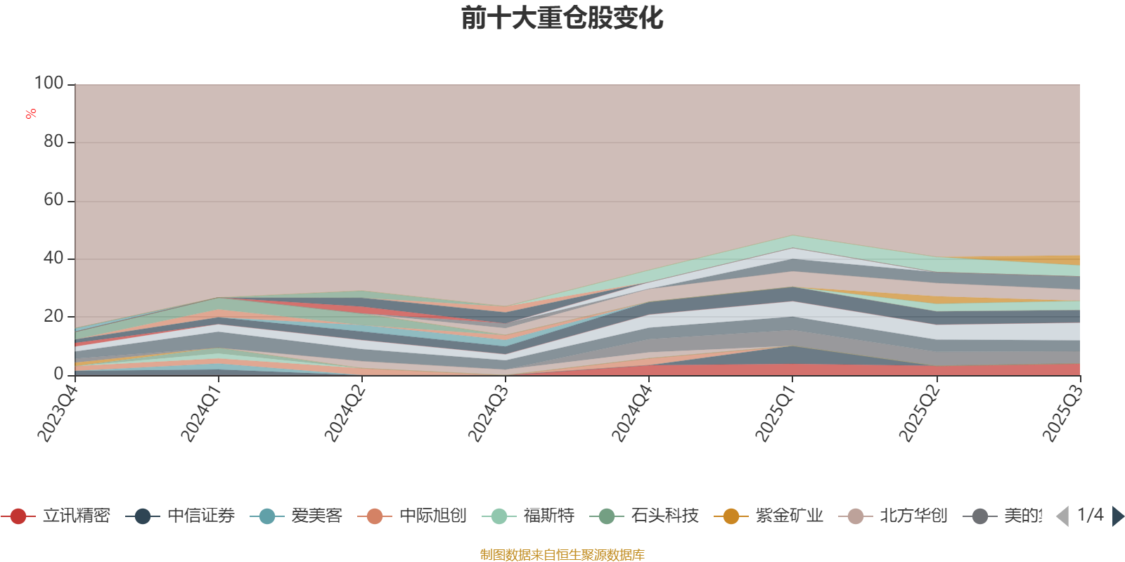 截至2025年三季度末,基金十大重仓股分别是宁德时代、恒瑞医药、迈瑞医疗、美的集团、立讯精密、比亚迪、工业富联、贵州茅台、中国船舶、工商银行。