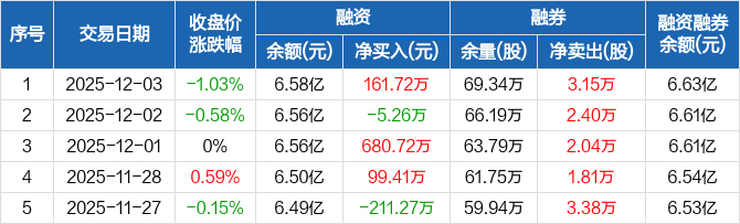 财达证券融资融券信息显示,2025年12月3日融资净买入161.72万元;融资余额6.58亿元,较前一日增加0.25%。