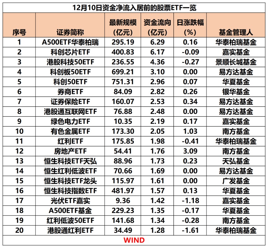 12月10日,股票ETF(含跨境ETF)资金净流出32.8亿元。