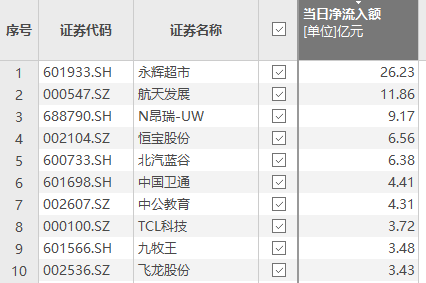 资金风向标 | 永辉超市获资金净流入26.23亿元