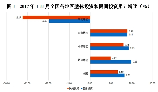 债券违约的频繁发生也从侧面体现出了东北民营经济的疲软。苏宁金融研究院的数据显示,2017年1~11月东北地区固定资产投资增速为-9.87%,其中民间投资增速为-16.19%。事实上,这对混改和重组造成较大制约。