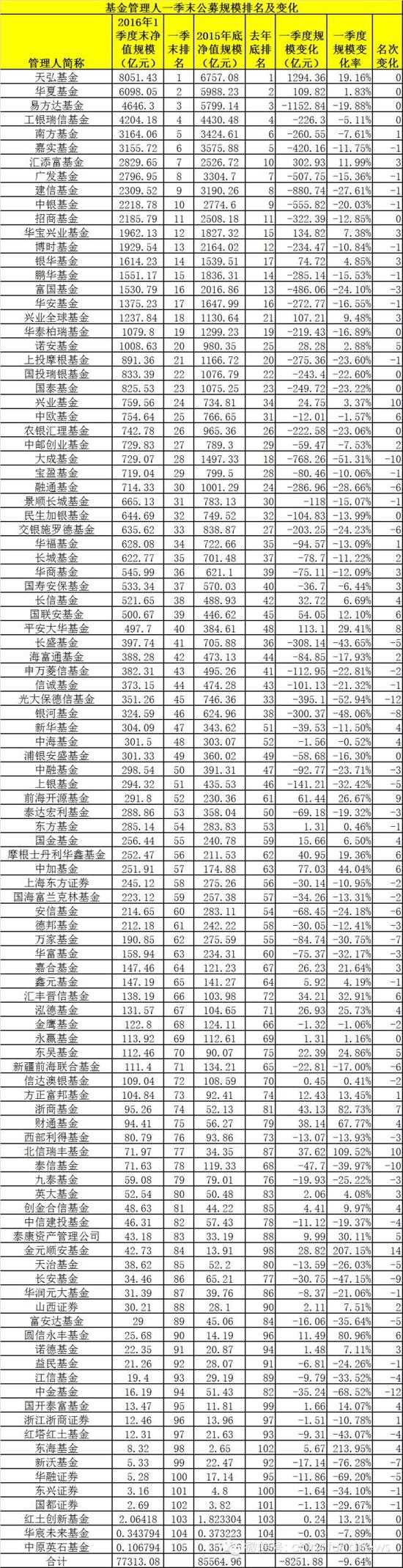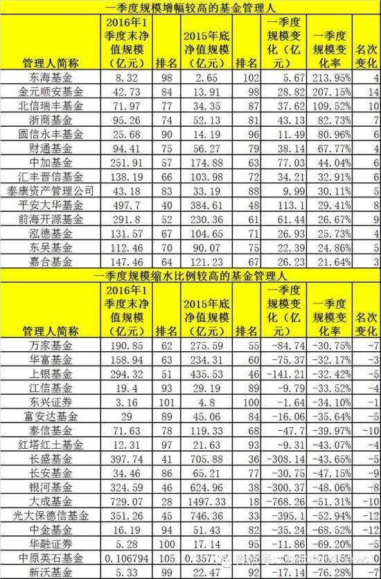 基金公司一季末规模排名出炉:有公司惨遭腰斩