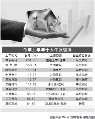 上半年A股十大牛股 基金追上六个(名单)