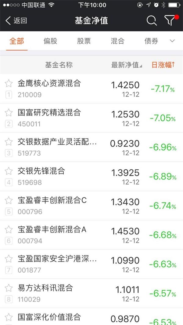 据不完全统计,金鹰核心资源、国富研究精选跌幅超过7%,交银数据产业、交银先锋混合、宝盈睿丰创新、宝盈国家安全、易方达科讯、国富深化价值、中融竞争优势、华安媒体互联网、长盛电子信息产业等大批基金净值跌幅超过6%.