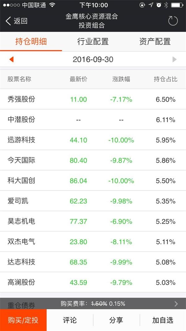 国富研究精选的重仓股,也是一手的成长股和创业板。今日单位净值下跌7.05%,最新单位净值为1.253元。前十大重仓股中,赢时胜跌停,东方通、高伟达、超图软件等接近跌停,全志科技、特发信息、大港股份等跌幅超5%。