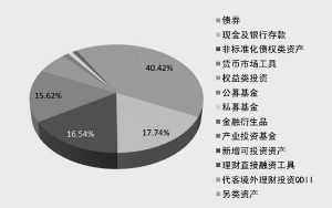 截至2016年6月底,商业银行的理财产品整体规模为26.28万亿元,理财产品配置债券、银行存款、非标准化债券和货币市场工具的占比分别是40.42%、17.72%、16.54%和15.62%。债券作为理财的重点配置资产,占比最大,其中有6.92%比重配置利率债,28.96%配置信用债,其余4.54%配置的债券资产被金融机构登记为“其他债券”。