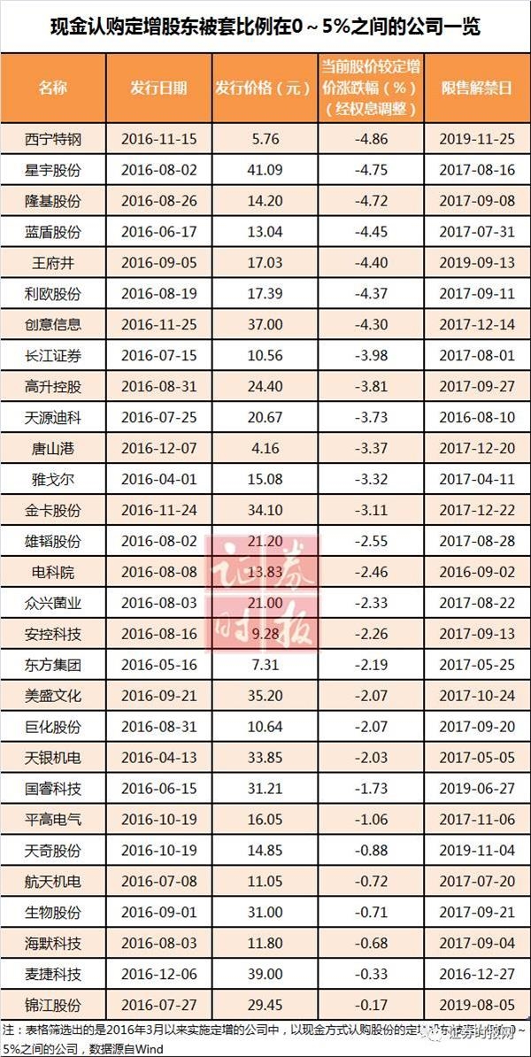 PS:最后要提醒投资者的是,定增股东虽然相较散户资金量大、更为专业,但被套之后迟迟不能回本的案例也不少,毕竟谁也不是神,散户还是需要且投且珍惜!