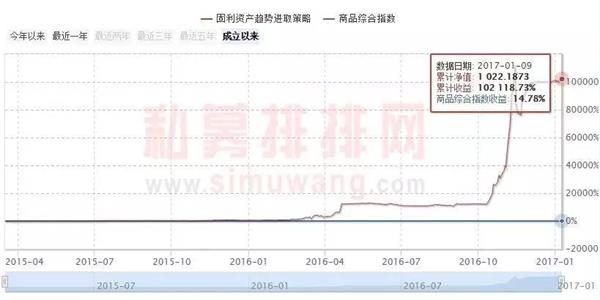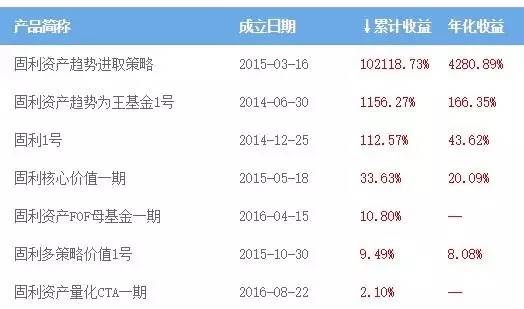 那更厉害的是什么?这两天的年度数据出炉,私募单账户产品“固利资产趋势进取策略”2016年年度收益竟然高达14801.65%,一年取得了将近150倍的收益,堪称神话。
