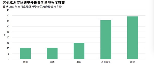 其他亚洲市场的境外投资者参与程度较高。来源:穆迪