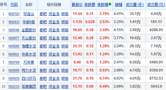 点击查阅水泥板块行情一览(数据来源:东方财富网)