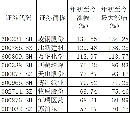具体来看,凌钢股份作为钢铁行业的大牛股,年初至今涨幅高达132.5%。