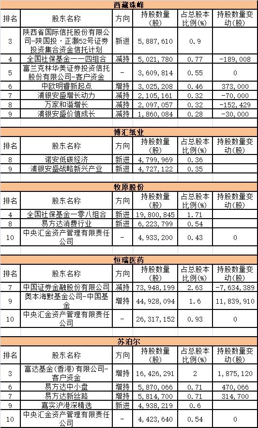 其余5只牛股的前十大流通股东中,机构持仓情况如下: