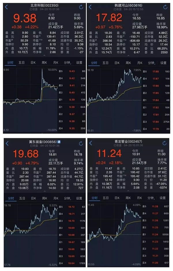 上周五午后,雄安概念股拉升。北京科锐、韩建河山、冀东装备、青龙管业等有拉升动作。