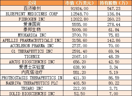 高瓴资本2018年一季度持有的生物制药及医疗健康相关企业: