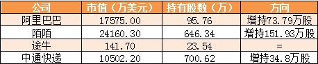 相较于去年四季度末,涌金资产管理有限公司增持了阿里巴巴、陌陌和中通快递,清仓了另外一只中概股迅雷,彼时其持有658.3万美金的迅雷股份。