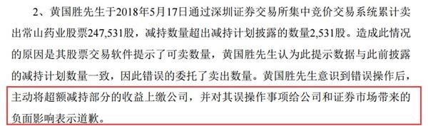 造成此情况的原因是其股票交易软件提示了可卖数量,黄国胜认为此提示数据与此前披露的减持计划数量一致,因此错误地委托了卖出数量。黄国胜意识到错误操作后,主动将超额减持部分的收益上缴公司,并对其误操作事项给公司和证券市场带来的负面影响表示道歉。