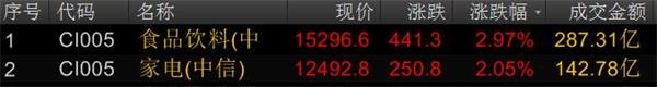 从今日的市场表现来看,29个一级行业指数中,食品饮料、家电指数仍以超过2%的涨幅领先其他指数。