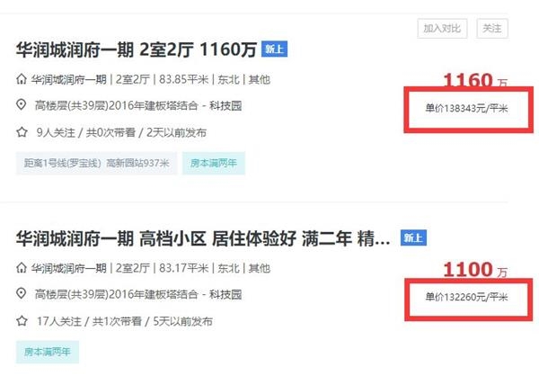 安居客和链家网显示,华润城润府一期二手房挂牌价为10-11万元/平方米,最高13万元/平方米,较本轮备案均价高出了约4.5万元/平米。抢到一套起码“赚”几百万。