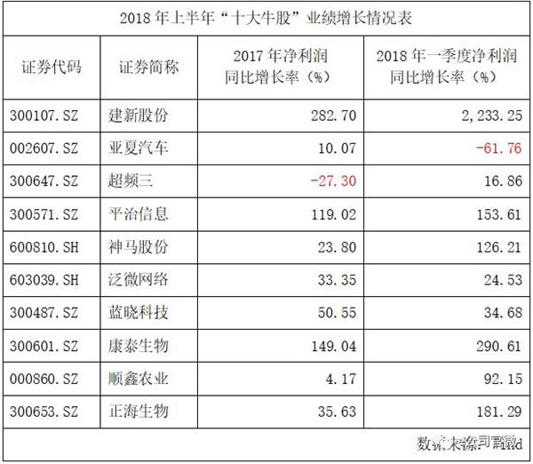 逆势大涨的十大牛股均涨逾90%。为首的是苯系中间体龙头建新股份,近两年受益于环保去产能下产品价格暴涨而业绩大幅增长,去年全年净利润同比增长288%,今年一季度延续高增长,归母净利同比劲增逾20倍,股价半年累计涨幅达175%。