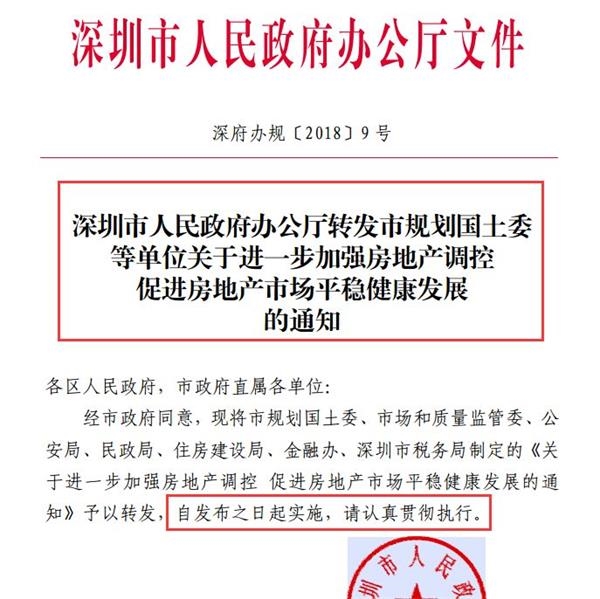 继深八条以后,深圳再度对楼市出手严控。7月31日,深圳发布《深圳市人民政府办公厅转发市规划国土委等单位关于进一步加强房地产调控促进房地产市场平稳健康发展的通知》,针对当前市场上存在的假离婚购房、投机炒房等市场乱象进行了针对性的打击。