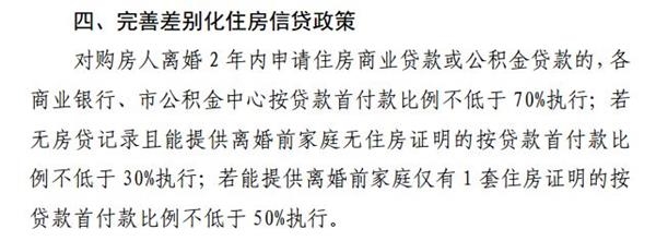 对购房人离婚2年内申请住房商业贷款或公积金贷款的,各商业银行、市公积金中心按贷款首付款比例不低于 70%执行;