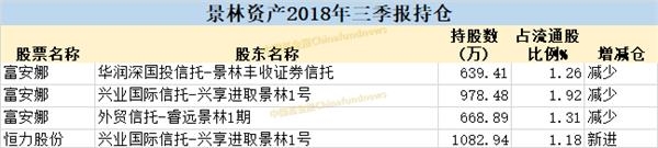 景林买进PTA巨头恒力股份,部分减持富安娜