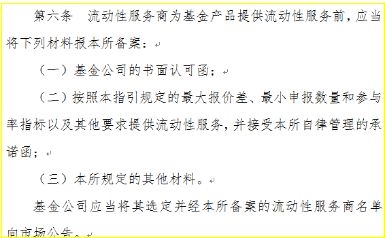《上海证券交易所上市基金流动性服务业务指引》于2012年5月25日正式发布;2015年5月26日曾经做出过修订,当时的修改进一步扩充了引入流动性服务的基金品种和流动性服务提供机构的选择范围。
