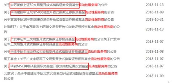 仅今年11月,就有申万菱信上证50ETF、中信建投中证北京50ETF等5只场内基金发布引入流动性服务商的公告。