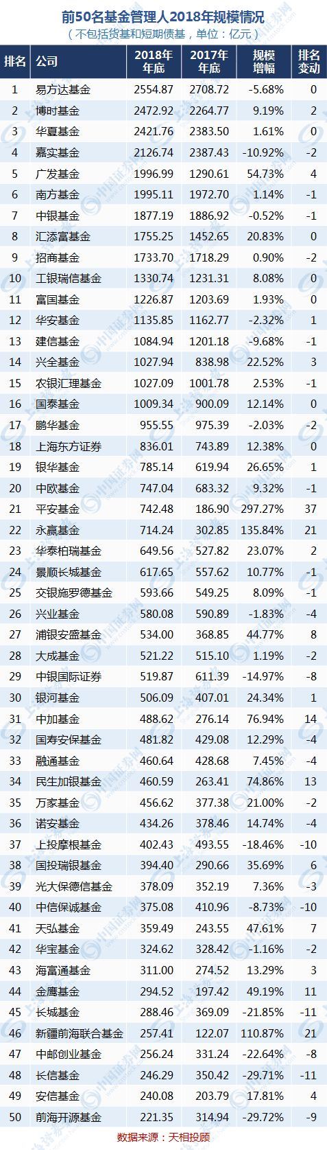 2018年基金公司管理规模排行榜出炉!博时、易方达、华夏位居三甲