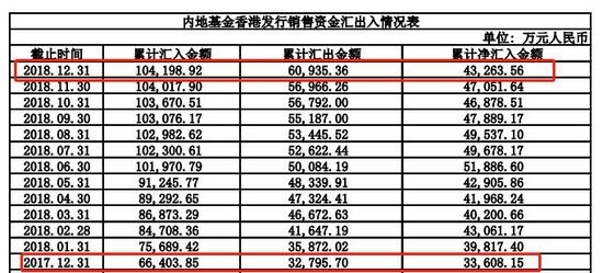 2018年北上互认基金资金净流出,累计销售是南下基金的24倍