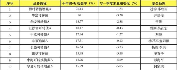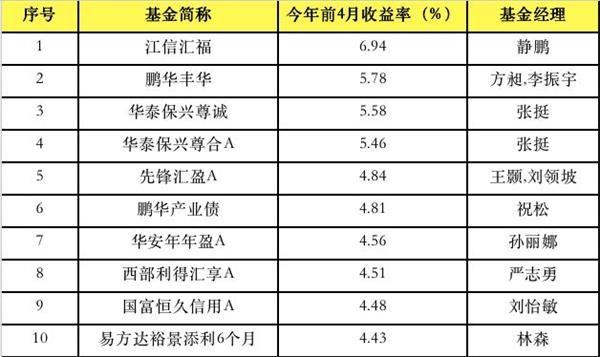 表4:今年前4月一级债基15强